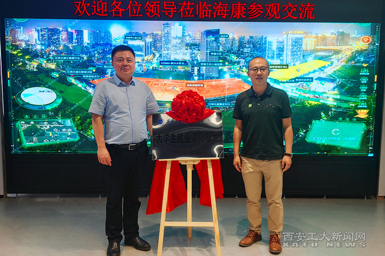梁云鹤与刘渊坤共同为就业实习基地揭牌。