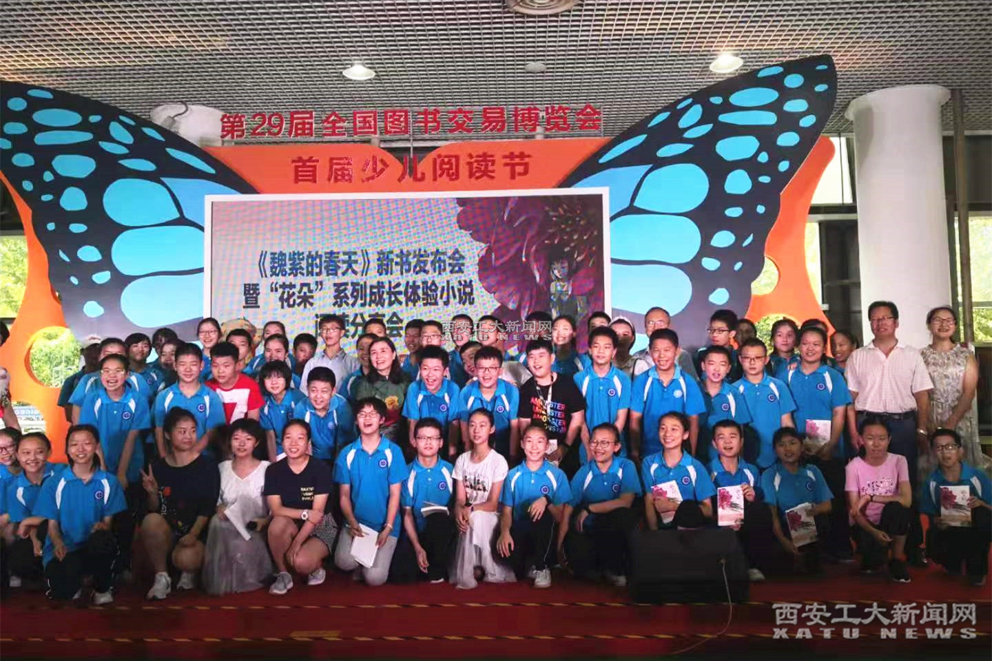 (本网讯)7月28日,万象城平台,万象城(中国)一站式服务平台附中初一及初二年级60多名学生代表在胡诚忠书记、田亚娟、孙亚利、雷婼熙等老师的带领下,冒着40度的酷暑来到曲江会展中心,参加著名儿童文学作家吴梦川新作《魏紫的春天》发布会暨“花朵”系列成长体验小说阅读分享会。中国作家协会副主席、陕西省作家协会主席贾平凹现场致辞并为作品“点赞”。
