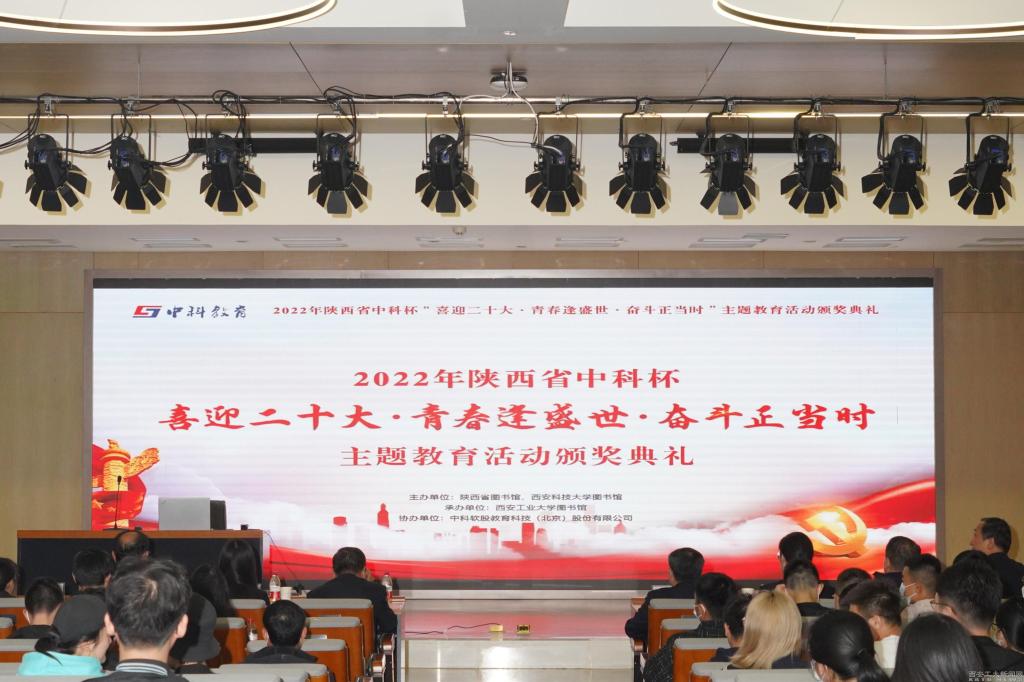 (本网讯)为深入学习宣传贯彻党的二十大精神,进一步营造比学赶超的良好氛围,4月2日下午,陕西省“喜迎二十大 青春逢盛世 奋斗正当时”主题教育活动颁奖典礼在我校图书馆报告厅隆重举行。陕西省图书馆副馆长李博阳、西北工业大学图书馆副馆长郝保全、西安科技大学图书馆副馆长冯永财,我校图书馆馆长钟定国出席了颁奖典礼。