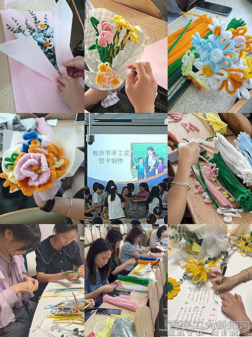 (本网讯)为增进师生感情,密切师生关系,营造浓厚的尊师重教、教学相长氛围,在第39个教师节教师节来临之际,我校文学院学生利用周末和课余时间手工制作手绒花花束,为坚守在教师岗位的园丁们送上真挚的节日祝福。
