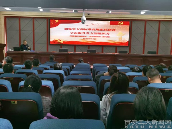 (本网讯)为深入学习贯彻新时代党的建设总要求和新时代党的组织路线,推动全面从严治党向基层延伸,着力加强党支部标准化规范化建设,11月19日下午,党委组织部在未央校区举办2020年党支部书记专题培训会,党委组织部部长、党校副校长梁闪慧就“加强党支部标准化规范化建设,全面提升党支部组织力”做专题培训,全校党支部书记、学院专兼职组织员120余人参加了培训,培训由党委组织部副部长、党校办公室主任姜冰清主持。