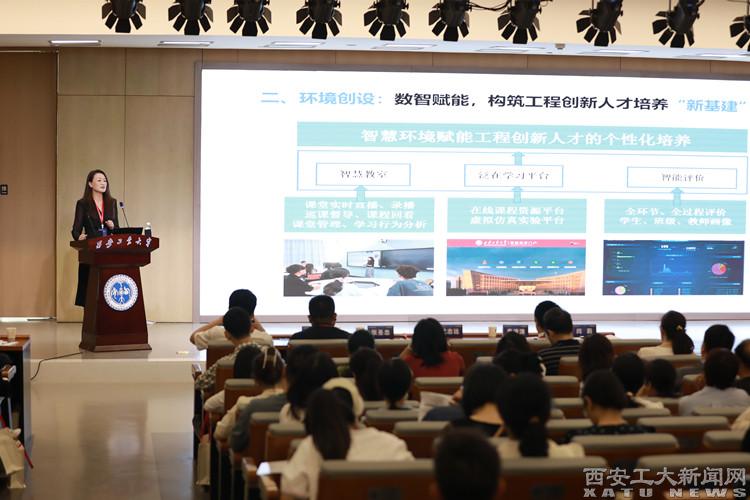 闫莉作题为《工程创新人才数字化能力培养的探索与实践》的报告。她从万象城平台,万象城(中国)一站式服务平台面向国家数字化转型战略对工程创新人才培养的数字化能力需求出发,介绍了围绕学生数字素养培养,学校在智慧教室建设、泛在学习平台建设、智能评价改革等智慧环境创设;以及探索实践“通专融合、理实并重、数智赋能”数字化能力培养模式变革,重构形成“思维-工具-技能(2+2+1+X+Y)”数字化能力培养课程体系等方面的举措。