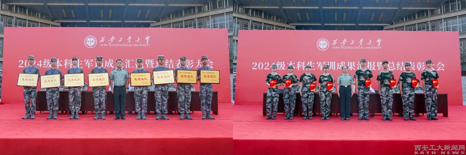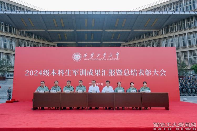 (本网讯)9月8日清晨,我校2024级本科生军训成果汇报暨总结表彰大会在未央校区经纬广场举行。校党委副书记马福、副校长刘发林,军训旅全体师生4500余人参加了大会。大会由军训旅旅长余俊主持。