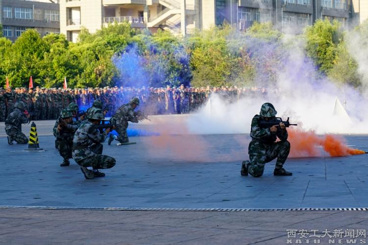 在冉冉升起的国旗下,参训同学以铿锵的步伐、嘹亮的口号、熟练的动作、昂扬的斗志演示了队列、捕俘刀、军体拳、刺杀操、战术运用等军训科目,展示了军训的丰硕成果。