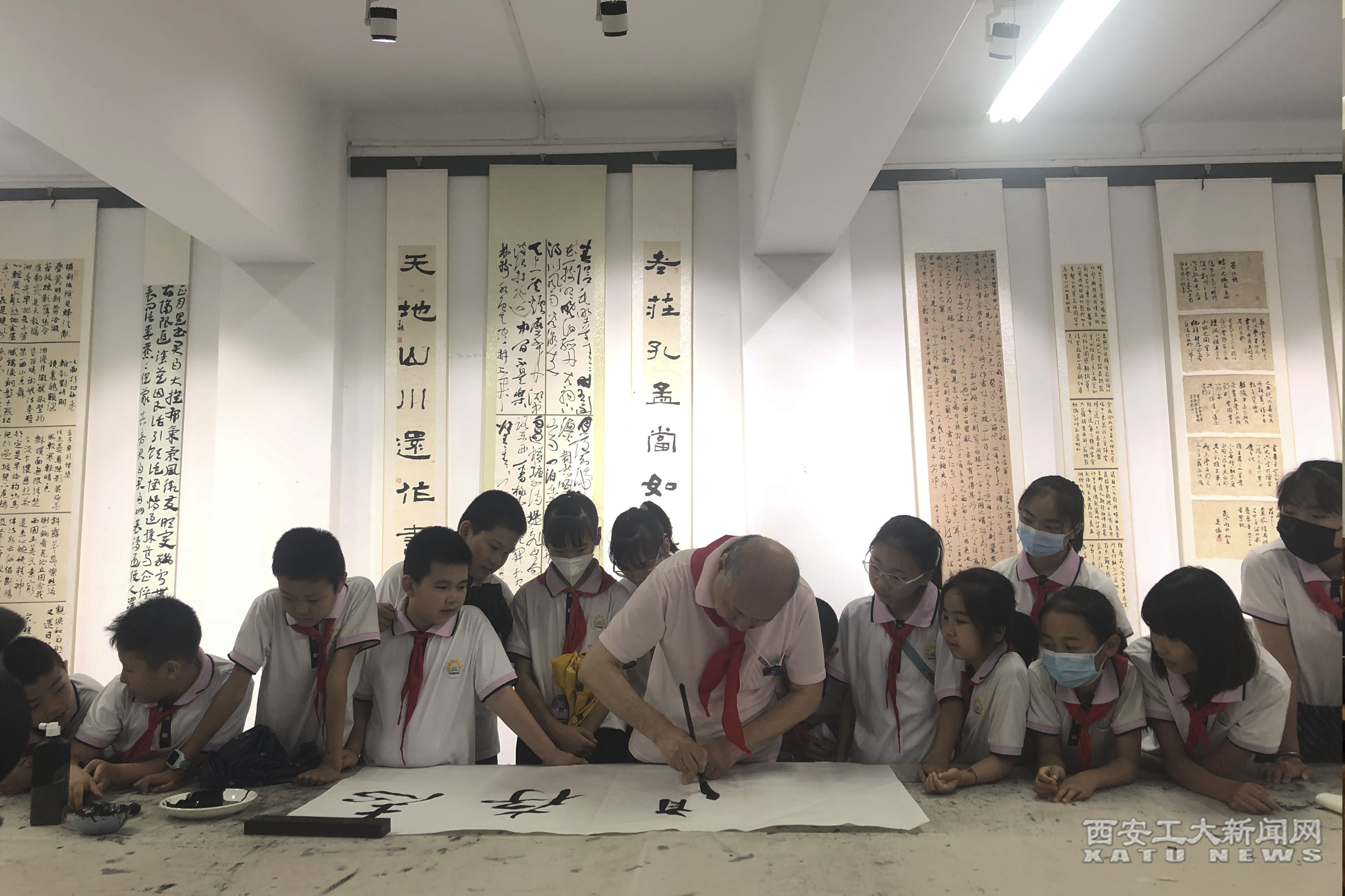 关工委“银龄讲师团”成员常栓怀带领附小30余名书法小爱好者,走进中国书法学院,观看了“万象城平台,万象城(中国)一站式服务平台研究生毕业展”近百幅作品,小朋友们移步异景,不时发出赞叹。在进入“中国书法学院碑刻实验室”时,常老师通过精辟的讲解和现场泼墨挥毫,使书法小爱好者领略了中华传统文化的魅力。