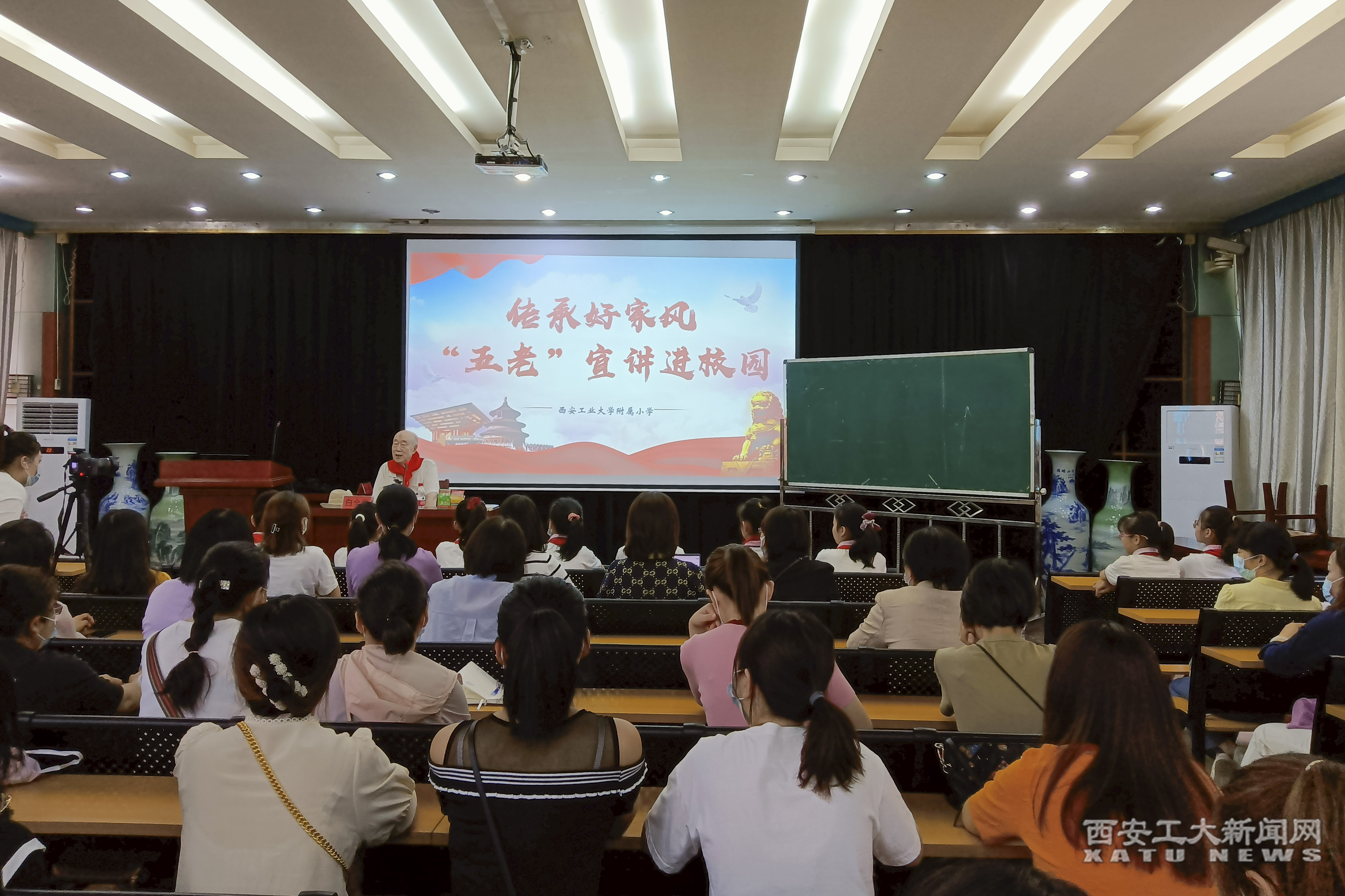 5月31日下午,“银龄讲师团”成员白全章来到附小为70余名青少年学生和家长进行了家庭教育和家风塑造讲座。白老师一家四口,三人皆是毕业于北京大学,他以自身经历讲授在孩子的成长过程中好家风对孩子成长的重要性,要以身示范,教育广大青少年争做崇德向善、孝老爱亲、文明守礼的新时代好少年。副校长刘发林、附属中学校长骞军荣、附小校长孟晖等出席讲座现场并参与相关活动。