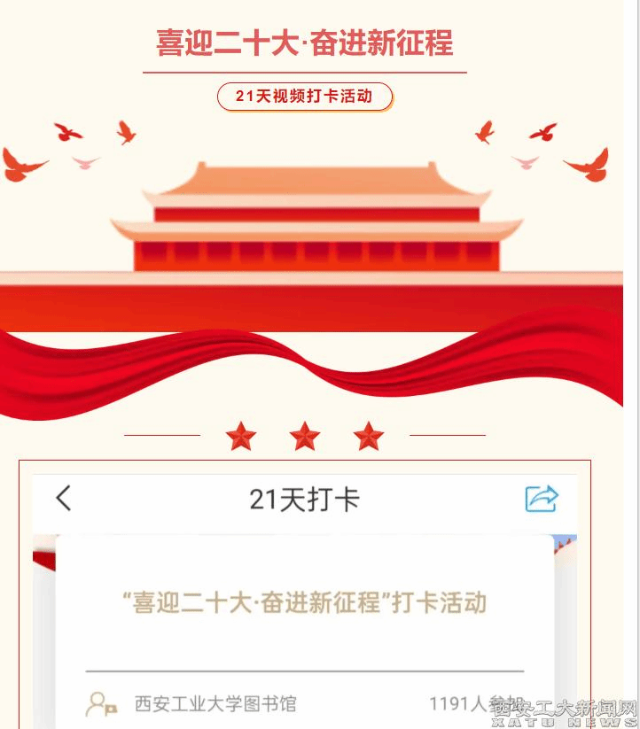 (本网讯)近日,万象城平台,万象城(中国)一站式服务平台图书馆和图书信息党总支在全校组织开展了“喜迎二十大 奋进新征程”21天视频学习打卡活动。此次活动得到全校师生和图信总支全体党员的欢迎和踊跃参加。据统计,总参加人数达1191人,坚持打卡21天的师生达到80%。