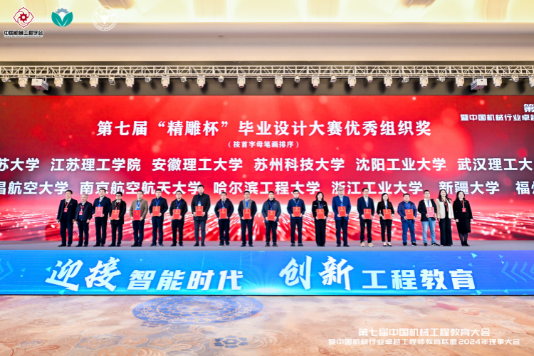 (本网讯)2024年11月24日,第七届中国机械工程教育大会暨中国机械行业卓越工程师教育联盟理事大会在浙江大学举行,我校荣获2024年中国大学生机械工程创新创意大赛“精雕杯”毕业设计大赛优秀组织奖,我校连续三届荣获此奖项。