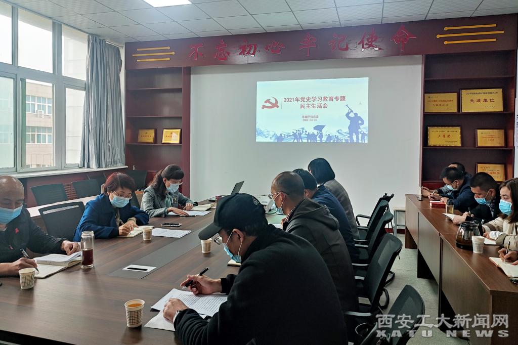 (本网讯)3月22日,基础学院党委召开党史学习教育专题民主生活会,校总会计师段小存到会指导。会议由基础学院党委书记张英主持。
