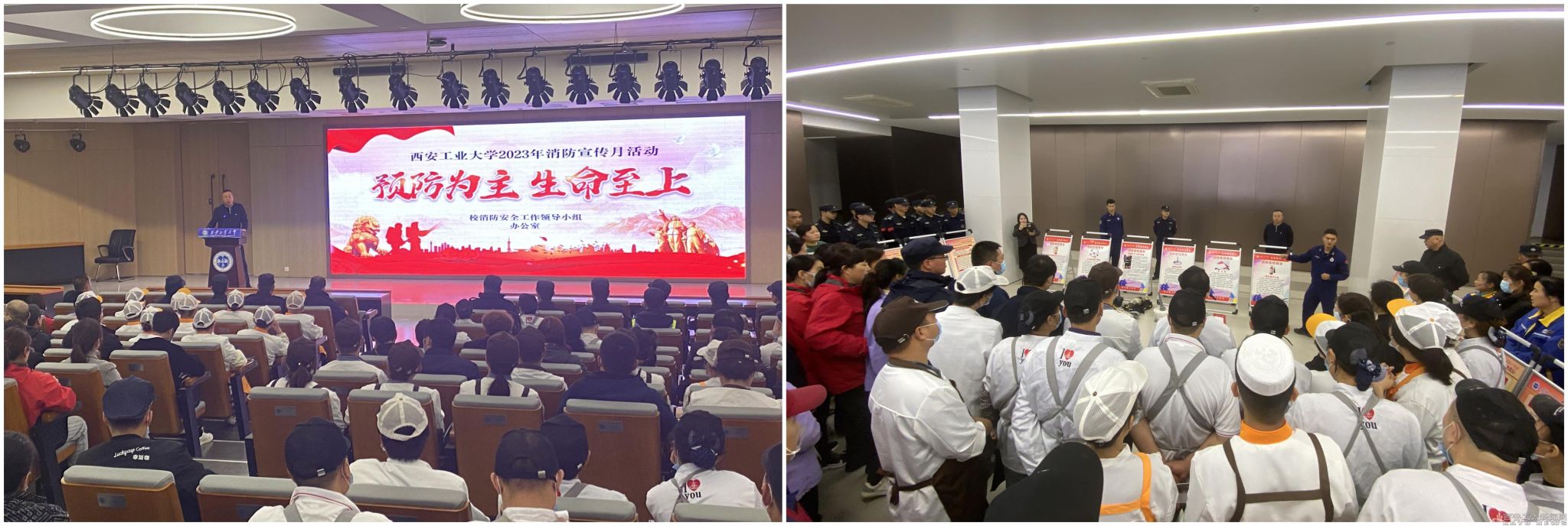 在开展消防安全宣教活动中,先后于11月8日和11月9日,邀请西安市消防救援支队专家来校授课和组织消防应急演练。授课专家结合火灾案例,按照“预防为主、防消结合”的原则,对人员密集场所火灾预防、火灾危险性分析、消防器材的使用方法、火场逃生自救等方面进行了细致生动的讲解。校内各重点防火部位、学工部、研工部、总务处、资产公司等单位600余名师生员工参与。