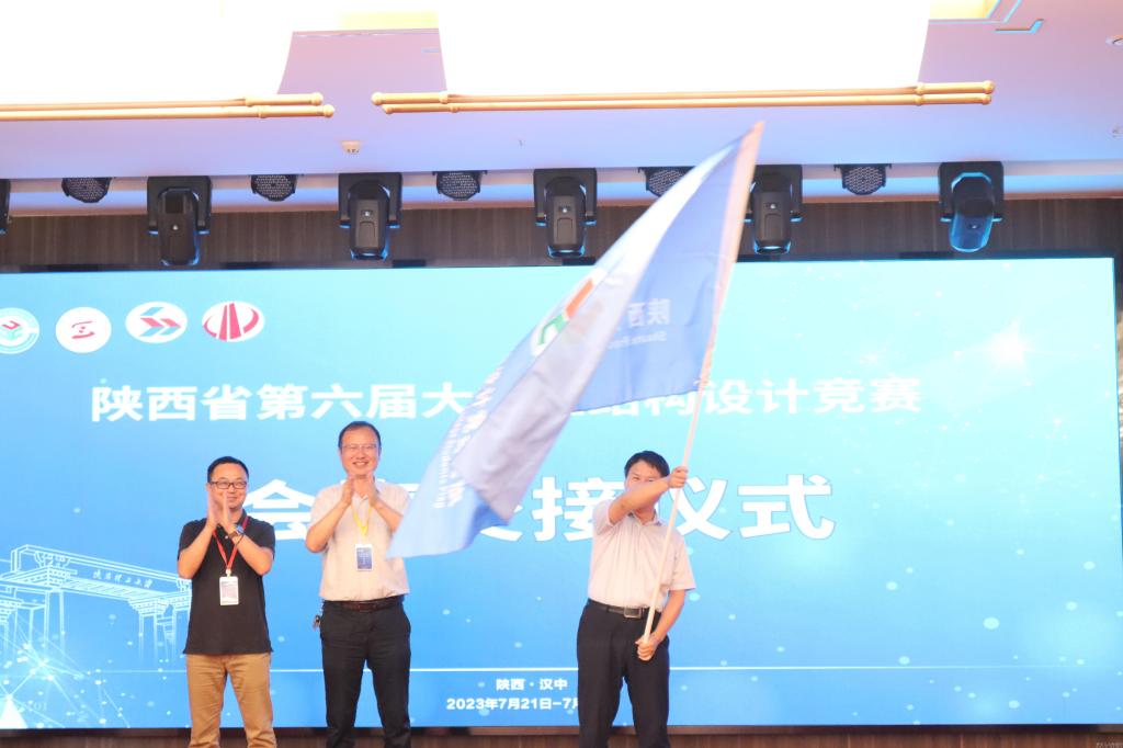 闭幕式上,我校作为下一届省赛的主办方,建筑工程学院院长黄华从陕西省大学生结构设计竞赛组委会手中接过会旗并发言,诚挚邀请省内各兄弟院校明年相聚万象城平台,万象城(中国)一站式服务平台,并祝愿参赛师生勇攀高峰、再创辉煌。
