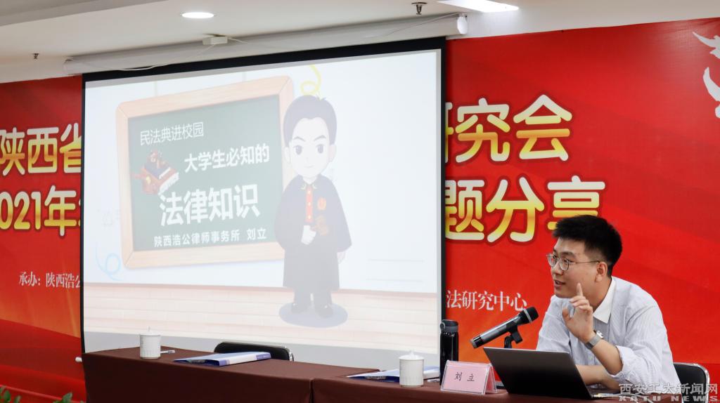 仪式结束后,刘立受邀为各位领导与在场师生开展了关于《美好生活·民法典相伴》的主题讲座。刘立先从具体案例切入首先阐述了不同年龄段的民事行为能力的不同,通过实际发生相关的案例深入阐释了向在校大学生进行普法的重要性。接着,他通过具体切实的案例,详细讲解了《民法典》中与日常生活息息相关的物权、侵权、人格权、婚姻家庭等。幽默风趣的语言,现场的提问互动,让参与讲座的同学均能理解相关法律规定并建立起感性认识。讲座结束后,其精湛授课获得了在场领导师生的一致好评。讲座结束后,实践队对陕西浩公律师事务所进行参观,对法律从业者的工作环境有了初步了解。