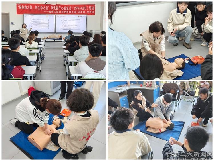 (本网讯)为进一步增强学生骨干应急救护意识,提高在紧急情况下的自救互救能力,3月16日,学工部、研工部联合校医院,在大学生活动中心青年之家举办了2期以“扬急救之帆,护生命之航”为主题的心肺复苏(CPR+AED)专项培训。未央区红十字会工作人员担任主讲嘉宾,120名学生骨干参加培训,并完成“CPR+AED”现场考核。