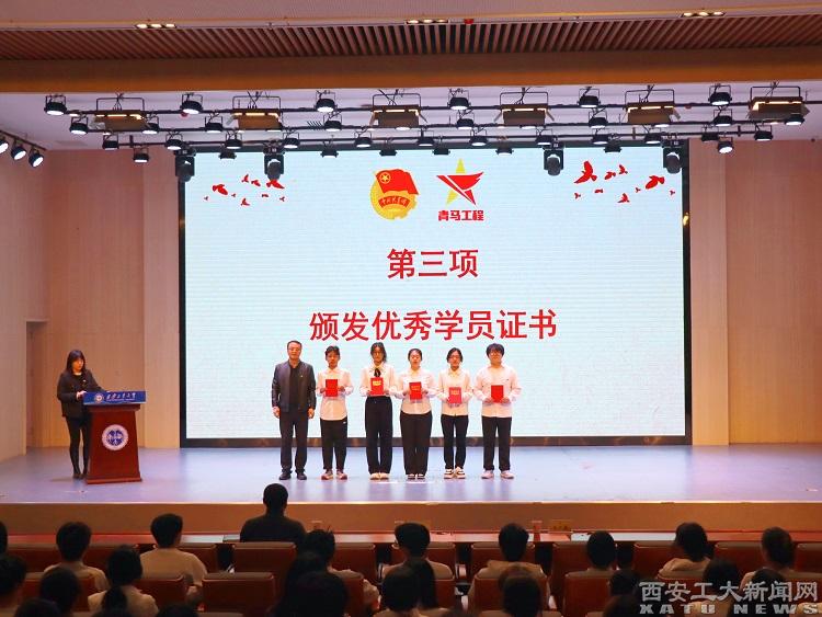党委学工部(学生处)副部(处)长张晓宾宣读“青马工程”大学生骨干培训班第三十三期优秀学员名单。马福为第三十三期优秀学员代表颁发荣誉证书。