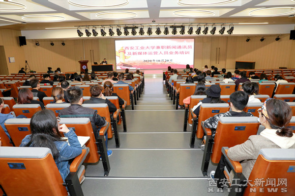 (本网讯)10月20日下午,学校举办全校兼职新闻通讯员及新媒体运营人员业务培训会。此次培训邀请了《中国妇女报》陕西记者站站长党柏峰作业务辅导报告。培训会由党委宣传部副部长、新闻中心主任刘建兵主持。