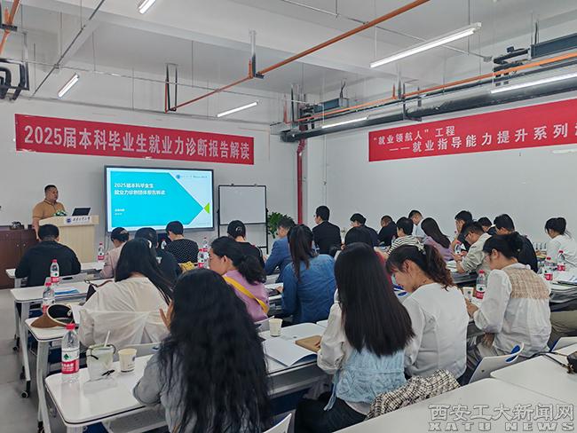 (本网讯)10月16日下午,我校在大学生活动中心举办“就业领航人”工程系列培训之2025届本科毕业生就业力诊断报告解读,各学院党委副书记、2025届本科毕业班辅导员及就业处工作人员参加,培训由就业处副处长张文鹏主持。