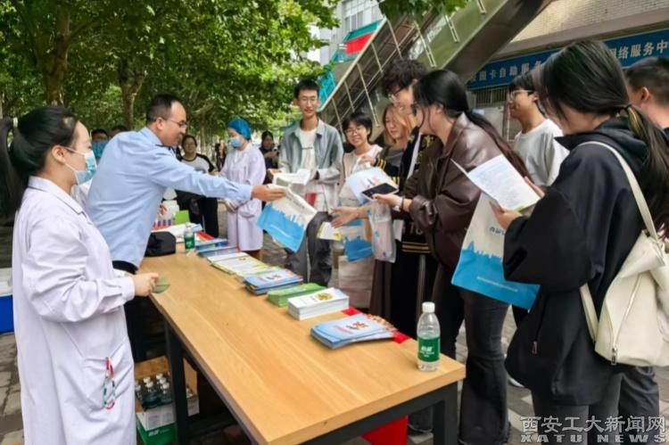 活动现场设置有“尚德守法·共享食安”主题宣传展台,精心准备了食品安全法律法规、常见食品安全隐患、如何辨别假冒伪劣食品等宣传资料,未央区市场监督管理局工作人员、学生宣传志愿者面对面与师生交流、宣传校园食品安全知识。