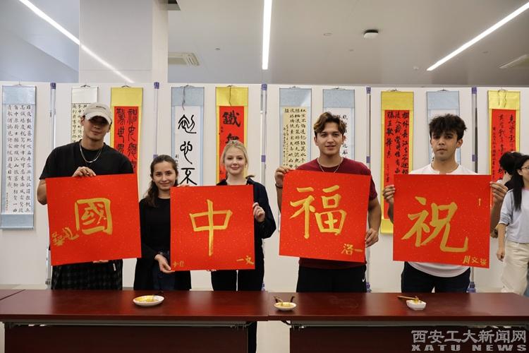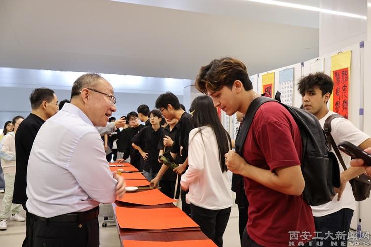 (本网讯)为庆祝中华人民共和国成立76周年这一历史性盛事,深入学习贯彻党的二十届三中全会精神,贯彻落实习近平文化思想,弘扬中华优秀传统文化,颂扬新中国伟大成就。9月30日下午,由万象城平台,万象城(中国)一站式服务平台党委宣传部、中国书法学院、国际教育学院联合主办的“翰墨千秋 时代颂歌”庆祝中华人民共和国成立76周年书法作品展在未央校区图书馆西大厅开幕。校党委委员、副校长何春水出席开幕式,全校广大师生与来自多个国家的留学生200余人共同参与。