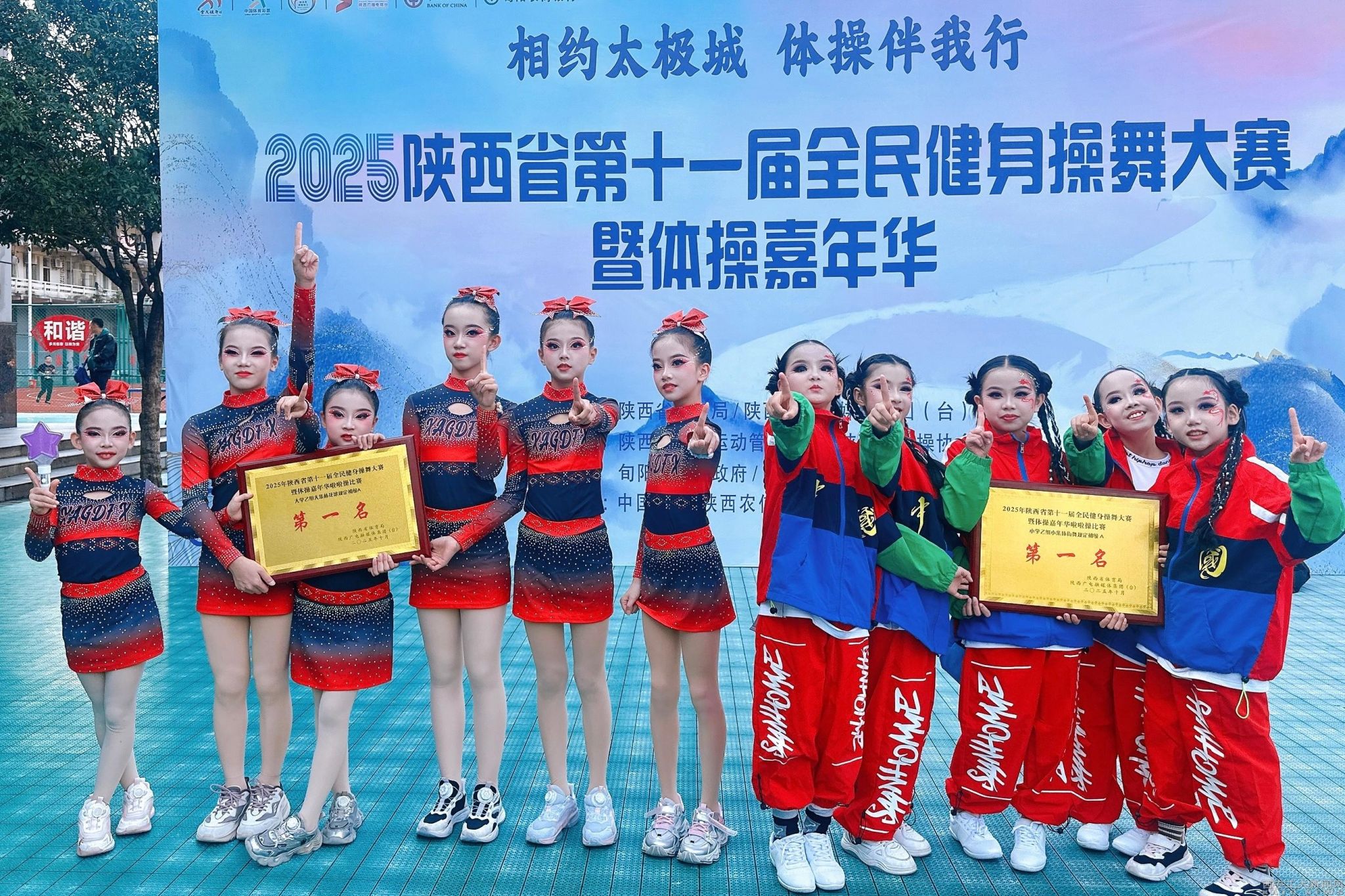 (本网讯)10月25日-26日,我校附小在安康市旬阳县举行的2025年陕西省第十一届全民健身操舞大赛暨体操嘉年华比赛中取得佳绩。活动由陕西省体育局主办。经过两天激烈角逐,附小代表队最终荣获健美操项目特等奖、啦啦操项目小集体街舞第一名、大集体啦啦操示范套路第一名、花球规定第一名、花球自选第一名的优异成绩。指导教师李倩、谢乐乐被评为“优秀教练员”。