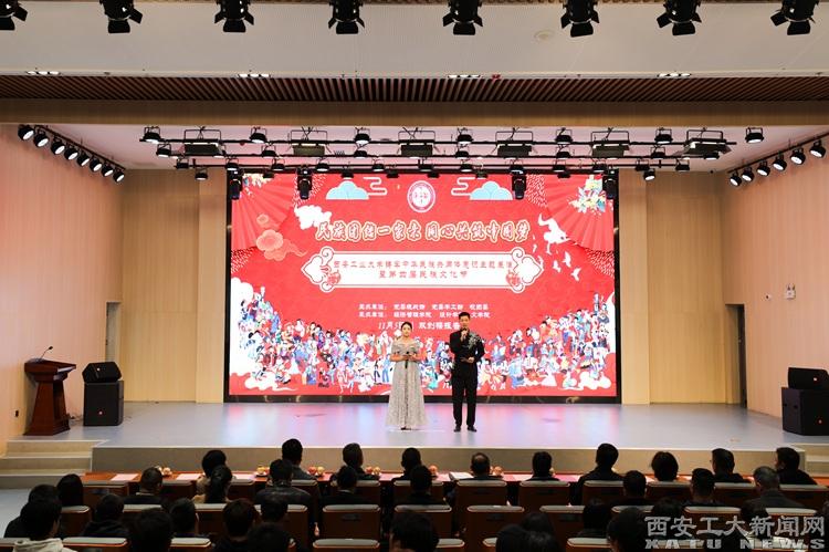 主题展演上篇“爱国礼赞新时代”中,马克思主义学院教师仇倩倩结合生动的事例讲授了一堂精彩的《用青春“朋友圈”铸牢中华民族共同体意识》主题微课,设计学院副教授张婧以《择一事终一生,守护民族文化瑰宝》为题,讲述了参与保护青藏高原建成遗产的亲身经历。在展演下篇“团结奋进向未来”中,两位辅导员崔弘、许金鑫和各民族学生代表动情讲述了西工校园里《石榴花开的故事》,展示了教师精心育人、各族学生努力成长成才的故事。在文艺表演中,民歌对唱《山歌好比春江水》清脆悦耳,马头琴演奏《天边》、《万马奔腾》婉转悠扬,传统舞蹈《盛世》端庄大气,民族舞蹈《千里万里舞天山》婀娜多姿,非遗传承杖头木偶戏《周仁回府》技艺精湛,展演最后各民族学生共跳团结舞蹈《爱我中华》,将现场气氛推向高潮。