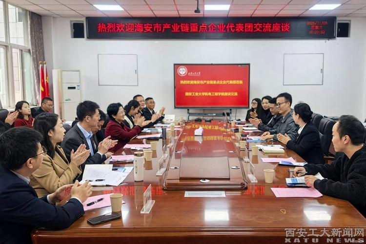 (本网讯)为深化产教融合、推动校地企协同发展,11月5日上午,江苏省南通市海安市政协副主席张羽翼一行来我校机电工程学院开展座谈交流。机电学院党委书记程新峰、副书记姚敏茹、副院长董皓参加会议。