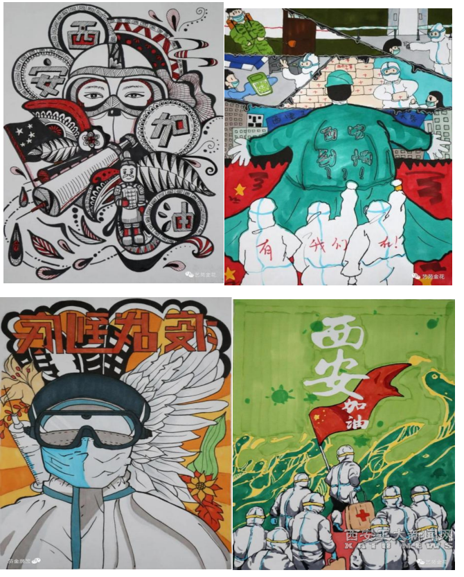 艺术学院学生以手中的画笔为“武器”,积极参与抗疫“斗争”,从抗疫中一幕幕感人瞬间里,抓取令大家泪目的画面,用手绘的形式予以展现,向抗疫一线的“战士”致敬的同时,号召广大党员及青年学生坚定信心、众志成城、共克时艰,鼓舞抗疫斗志,坚定抗疫信心。