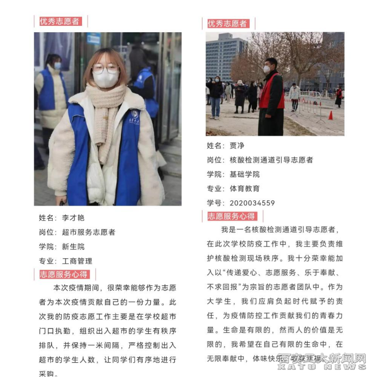 校团委发起“战‘疫’有我,无悔青春”为主题的疫情防控志愿者招募活动,服务于学校疫情防控的各项工作;开展“疫情防控志愿服务之星”活动,充分发挥学生党员和共青团员的先锋模范作用。