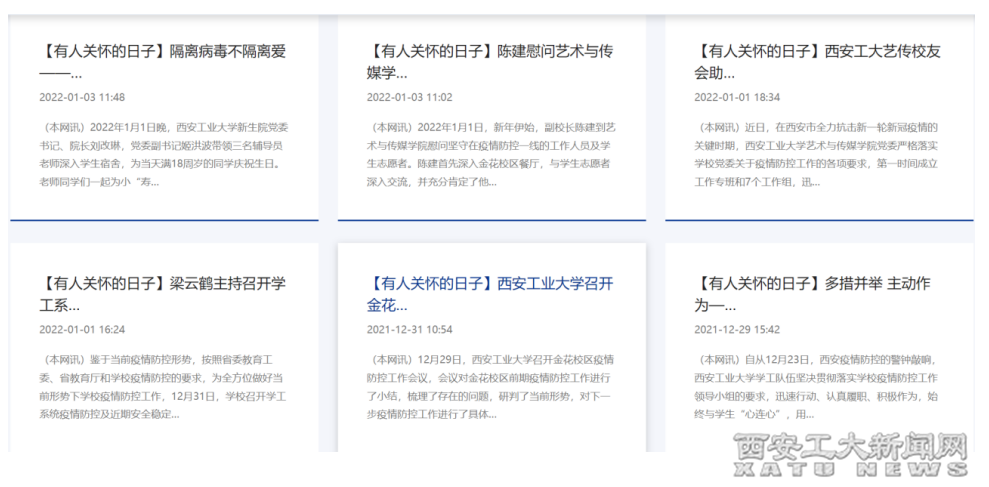 有序检测核算、错峰宿舍用餐、克服生活不便、坚持认真学习......在这特殊的时刻,全体西工学子继承发扬兵工精神,在防疫中学习、在学习中防疫,服从指挥,迎难而上,身体力行,让忠诚进取、精工博艺的西工印痕更加深刻,以实际行动上好疫情防控“思政大课”,让德育之花开满西安工大。