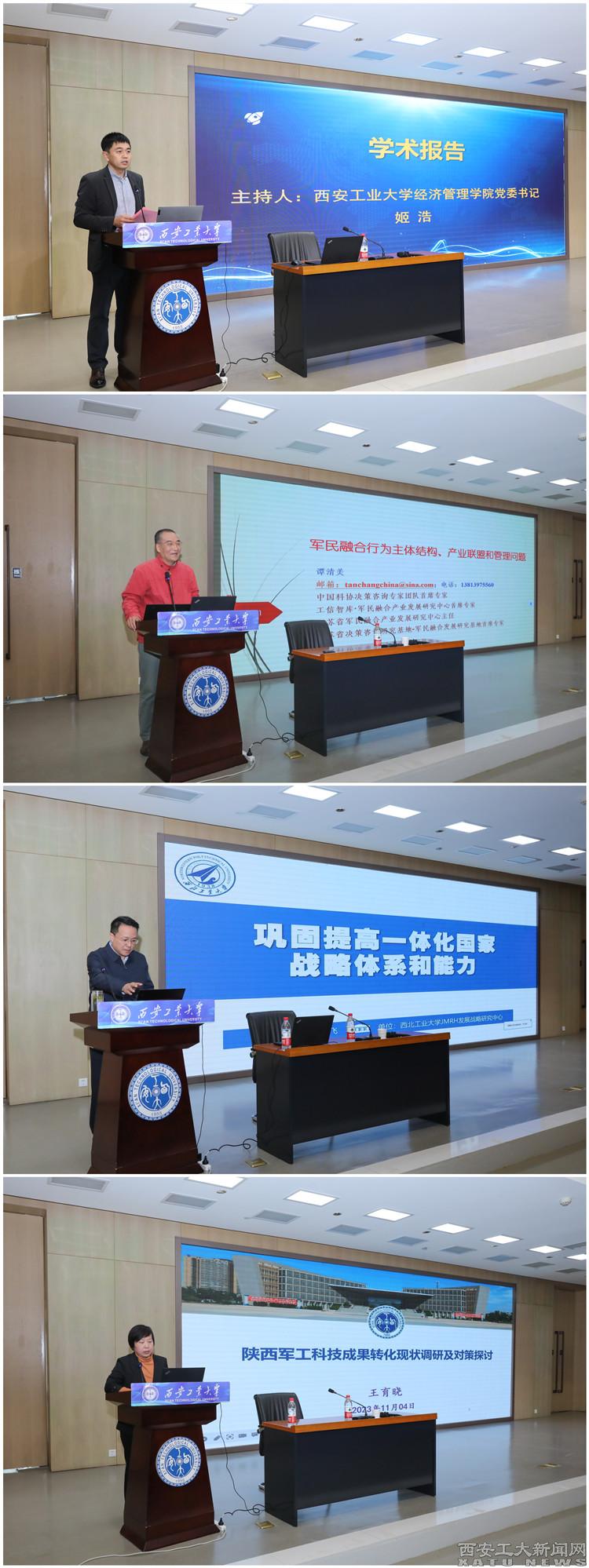 论坛第二阶段进行学术报告交流,由经济管理学院党委书记姬浩主持。南京航空航天大学谭清美教授、西北工业大学孙晔飞教授和我校王育晓教授分别以《军民融合行为主体结构、产业联盟和管理问题》《巩固提高一体化国家战略体系和能力》《陕西军工科技成果转化现状调研及对策研讨》为主题作了精彩纷呈的学术报告。
