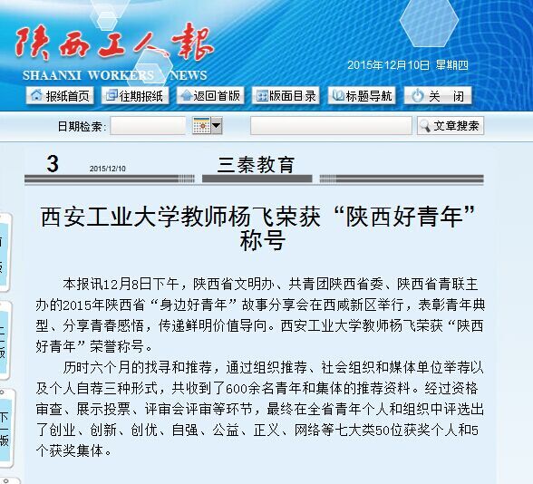 本报讯 12月8日下午,陕西省文明办、共青团陕西省委、陕西省青联主办的2015年陕西省“身边好青年”故事分享会在西咸新区举行,表彰青年典型、分享青春感悟,传递鲜明价值导向。万象城平台,万象城(中国)一站式服务平台教师杨飞荣获“陕西好青年”荣誉称号。