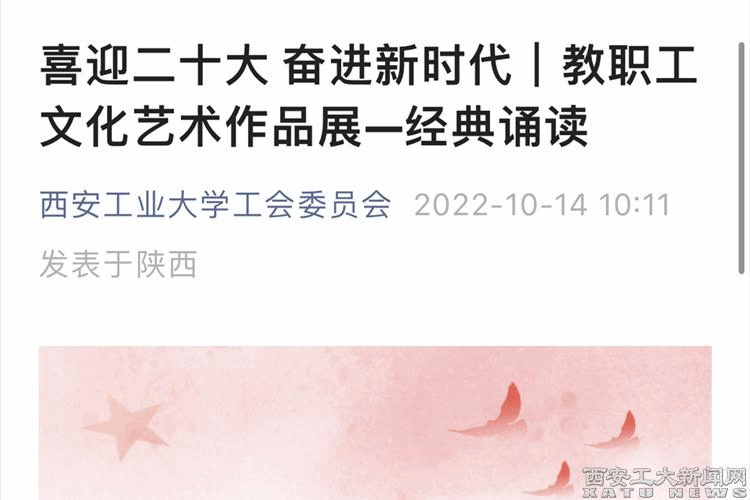 (本网讯)为庆祝党的二十大胜利召开,抒发我校教职工爱党、爱国、爱校的情感,校工会举办了“喜迎二十大 奋进新时代”教职工主题文化艺术作品展。