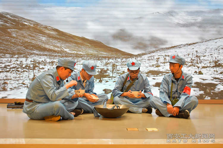 在记分员忙碌计分的同时,现场观众观看了由计算机学院带来的话剧《金色的鱼钩》,表现了红军的英雄历程,闪耀着红军金子般的思想光辉,更象征着中国工农红军崇高的革命精神永垂不朽。