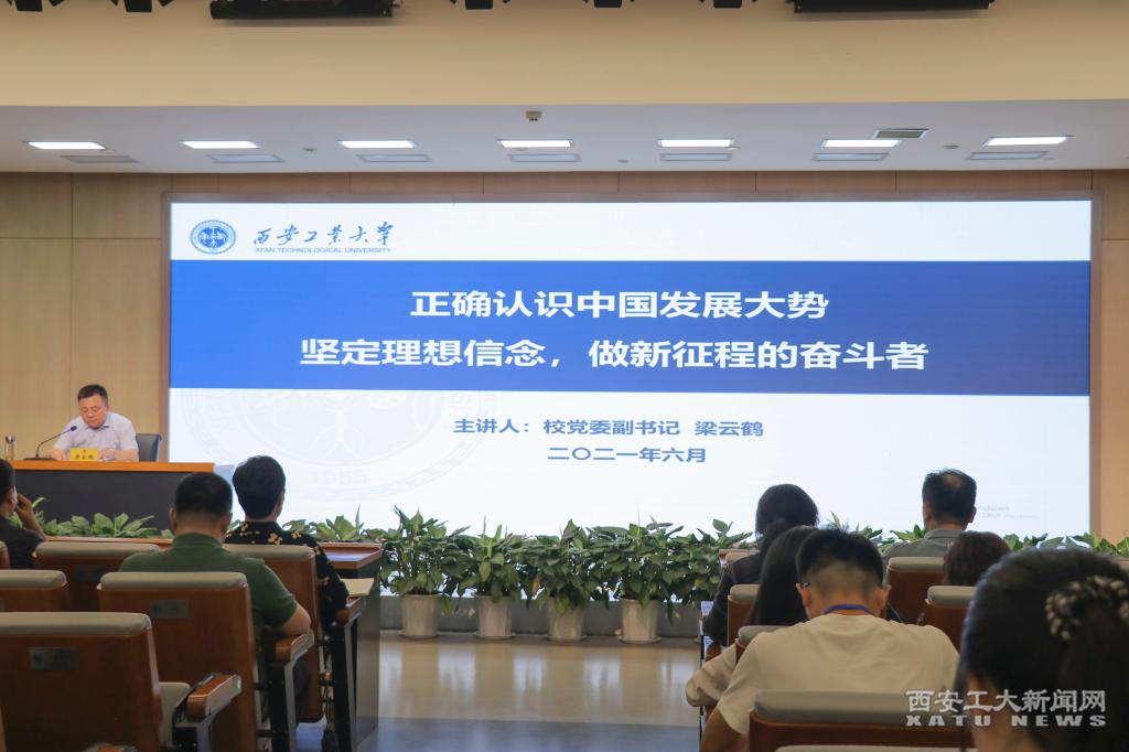 梁云鹤首先为第二十六期青年马克思主义者培训班全体学员进行了题为《正确认识中国发展大势,坚定理想信念,做新征程的奋斗者》的理论授课。他分别从正确认识和把握党和国家所处的历史方位;把握世界大势,何为百年未有之大变局;准确把握发展大势,做新时代奋斗者三个方面进行讲解。他强调,作为一名中国共产党党员更应坚定理想信念,坚决做到听党话跟党走。