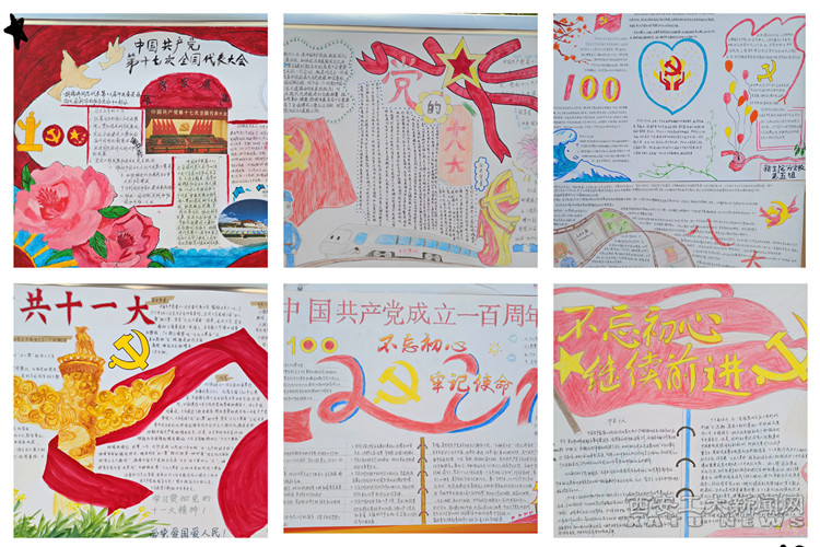 据了解,这些丰富多彩的手抄报由新生院分党校300余名学生亲笔手绘。以中国共产党的历次代表大会为主题,党课学员们在一幅幅画报上用五彩斑斓的画笔,描摹出自己对中国共产党成立100周年的热烈祝贺。经过前期系统且深入的党课学习,他们更加树立起对中国共产党的坚定信仰,纷纷自发组成小组,选定主题,密切合作,用温热的笔触传递着早日成为一名共产党员的热忱。