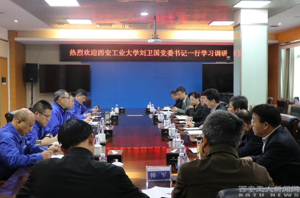 (本网讯)10月18日,校党委书记刘卫国、校长雷亚萍一行10人赴中国兵器工业集团北方电子研究院学习调研。研究院有限公司董事长梁培康、副总经理白峰等热情接待了刘卫国一行。同行的还有党委副书记王军周,省委主题教育第八巡回指导组副组长、西安邮电大学党委副书记张新柱,省委主题教育第八巡回指导组成员、陕煤集团黄陵矿业公司党委副书记、纪委书记孙鹏,副校长任海鹏等。